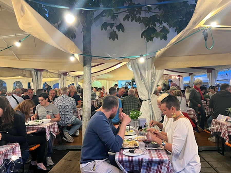 Ca. 3200 Innenplätze und viele Sitzplätze und Stehtische im Freien.